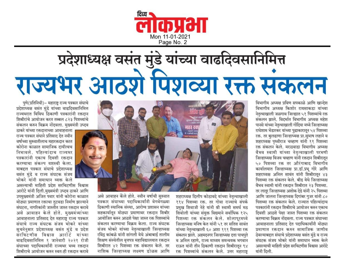 - दिवंगत पत्रकारांच्या कुटुंबियांना लोकसहभागातून मदत उपलब्ध करून दिली.