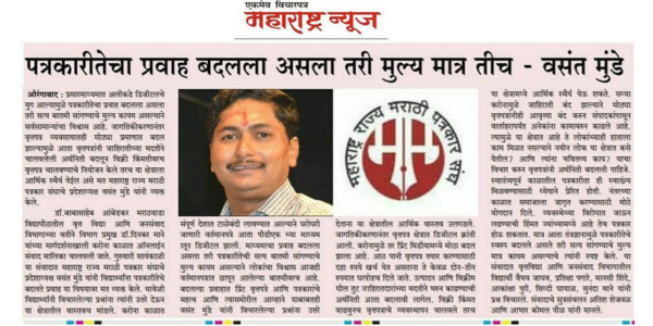 महाराष्ट्र राज्य पत्रकार संघ मुंबई आणि Aeon play च्या माध्यमातून वृत्तपत्र व डिजिटल माध्यमात केलेल्या नाविन्यपूर्ण कामाची दखल घेऊन पुरस्कारासाठी निवड केल्याबद्दल एबीपी माझाचे राजीव खांडेकर याचे वसंतराव मुंडे यांनी आभार मानले.