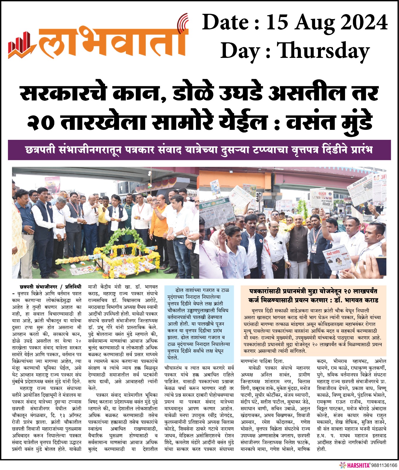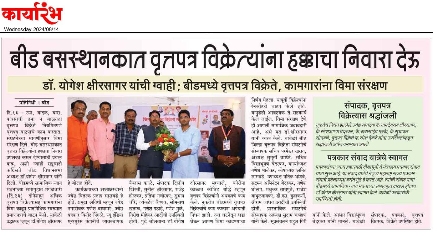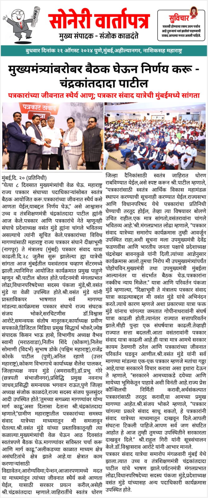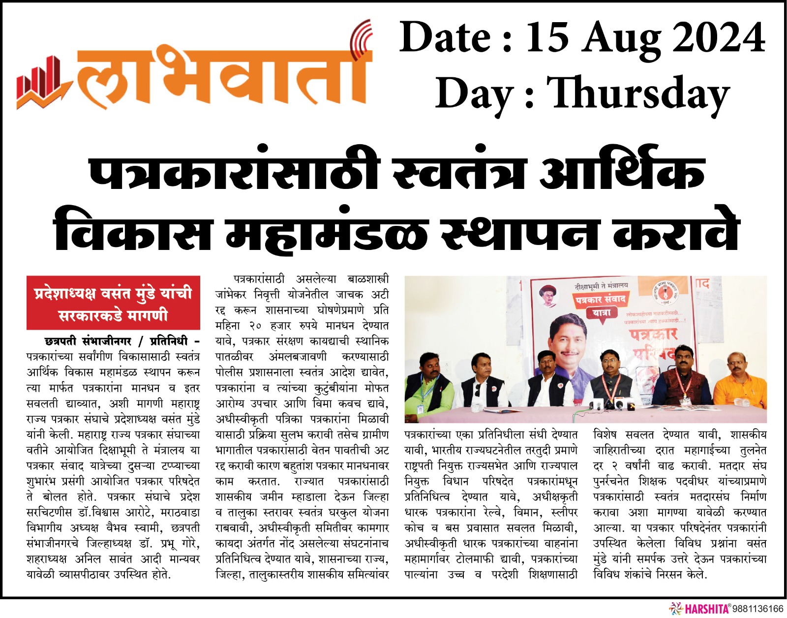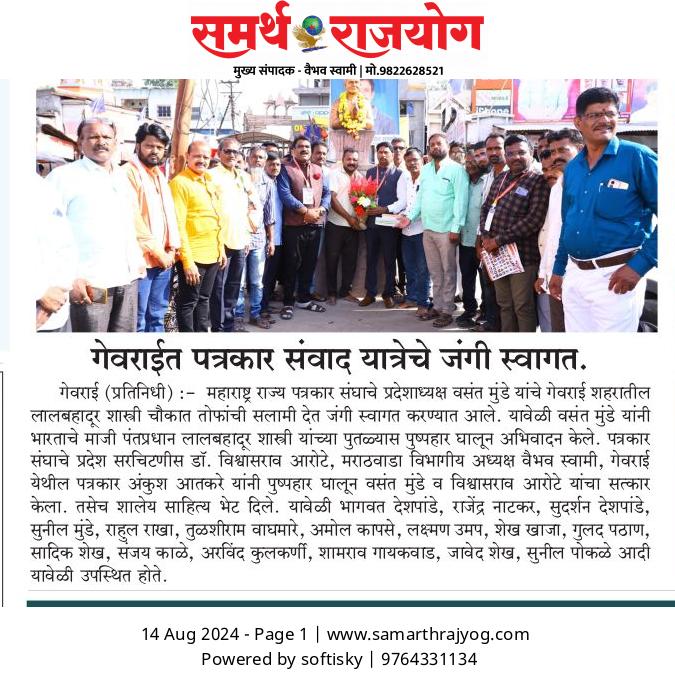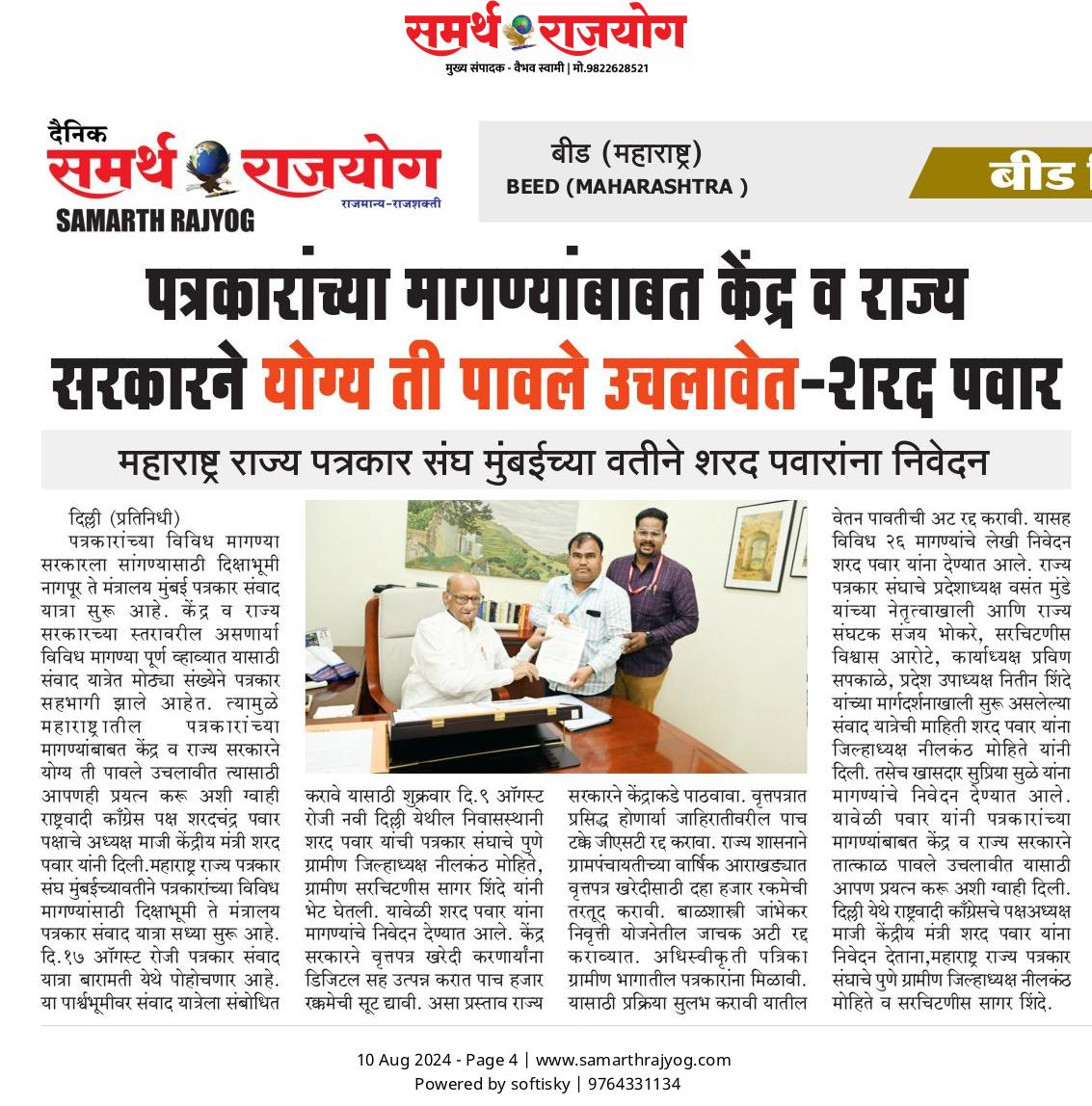 “लोकशाहीच्या बळकटीसाठी, पत्रकारांच्या न्याय हक्कांसाठी” हे ब्रीद घेऊन महाराष्ट्र राज्य पत्रकार संघ, मुंबईचे प्रदेशाध्यक्ष वसंत मुंडे यांच्या नेतृत्वाखाली दीक्षाभूमी- नागपूर ते मंत्रालय-मुंबई अशी राज्यव्यापी पत्रकार संवाद यात्रेला २८ जुलै २०२४ला प्रारंभ झाला.