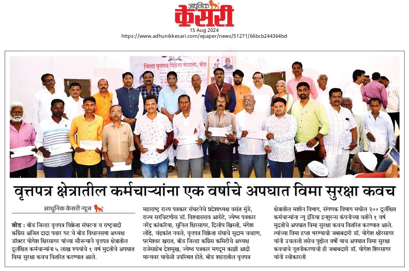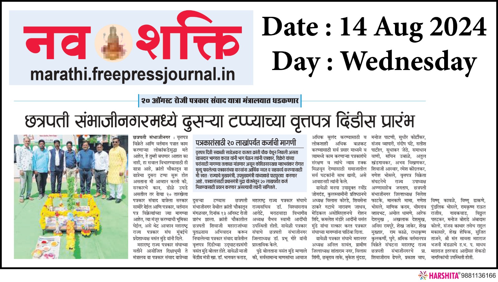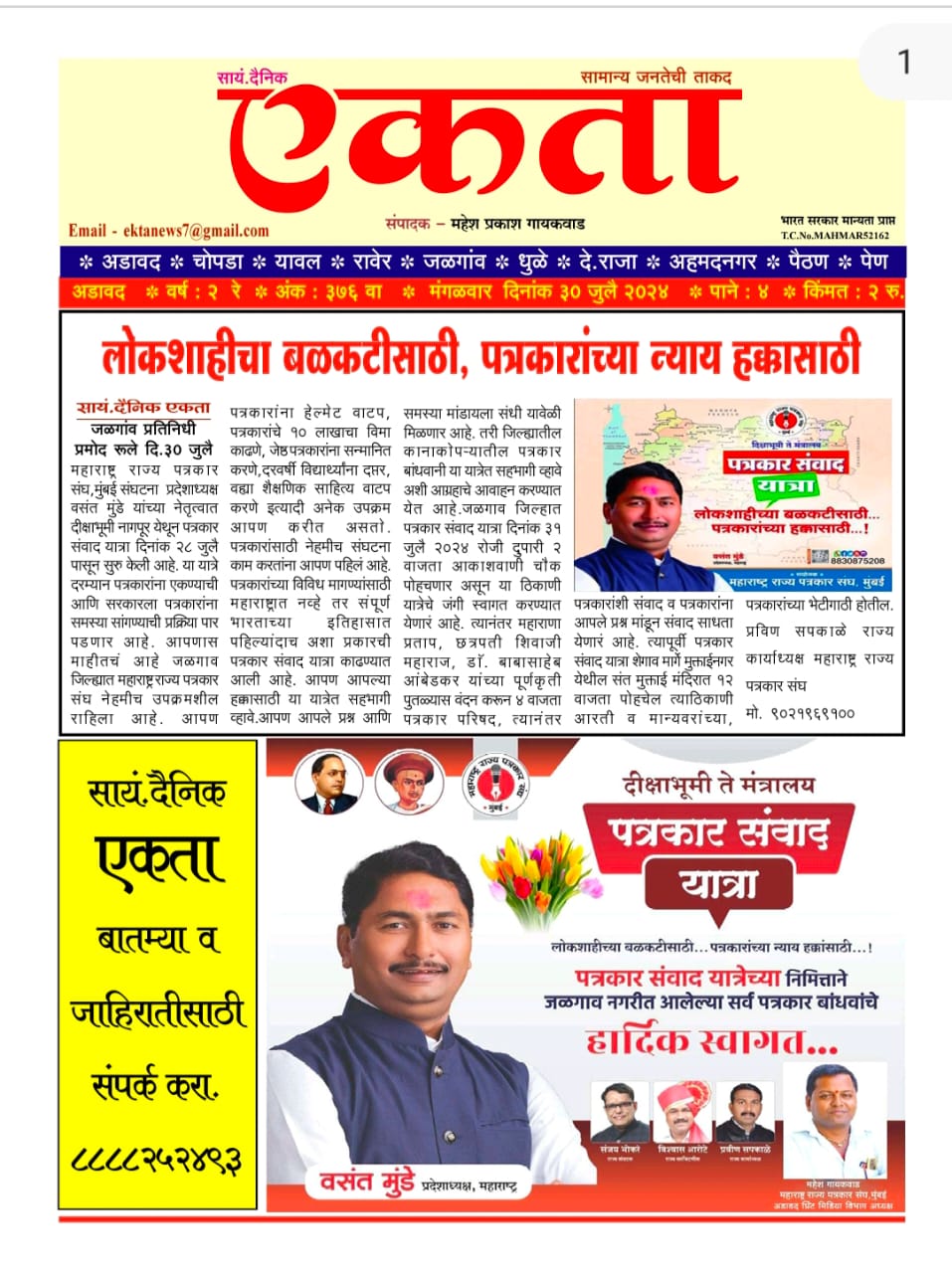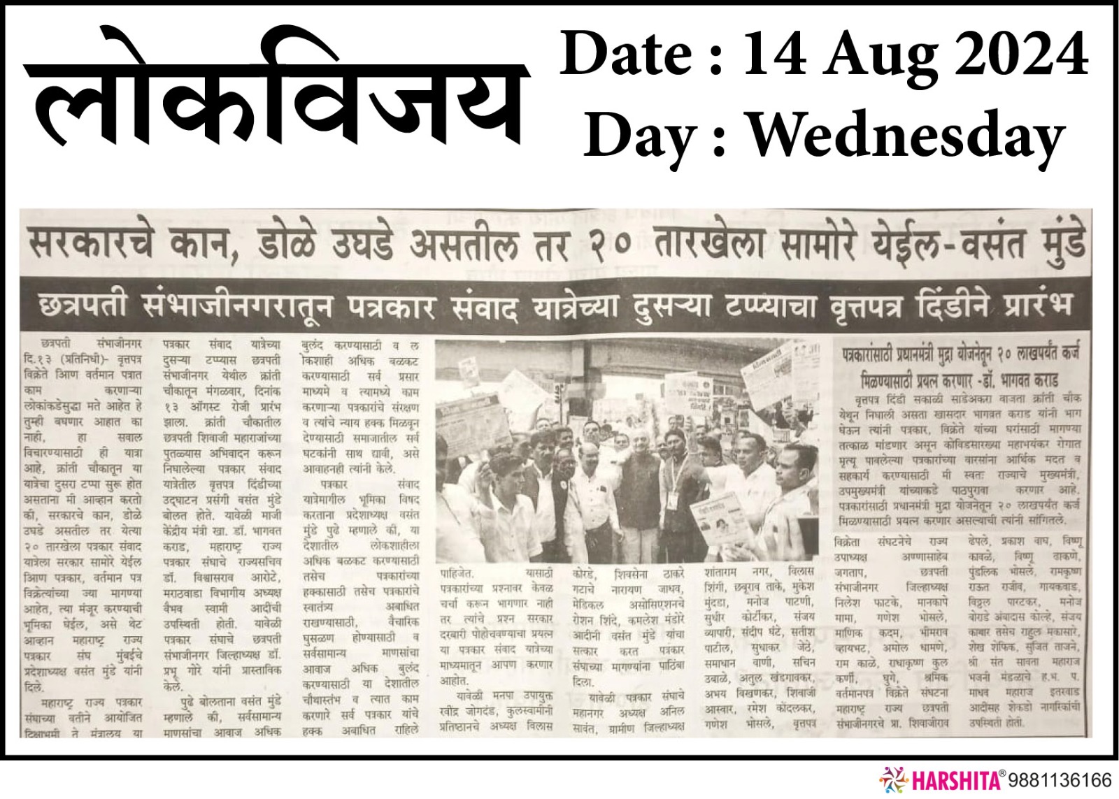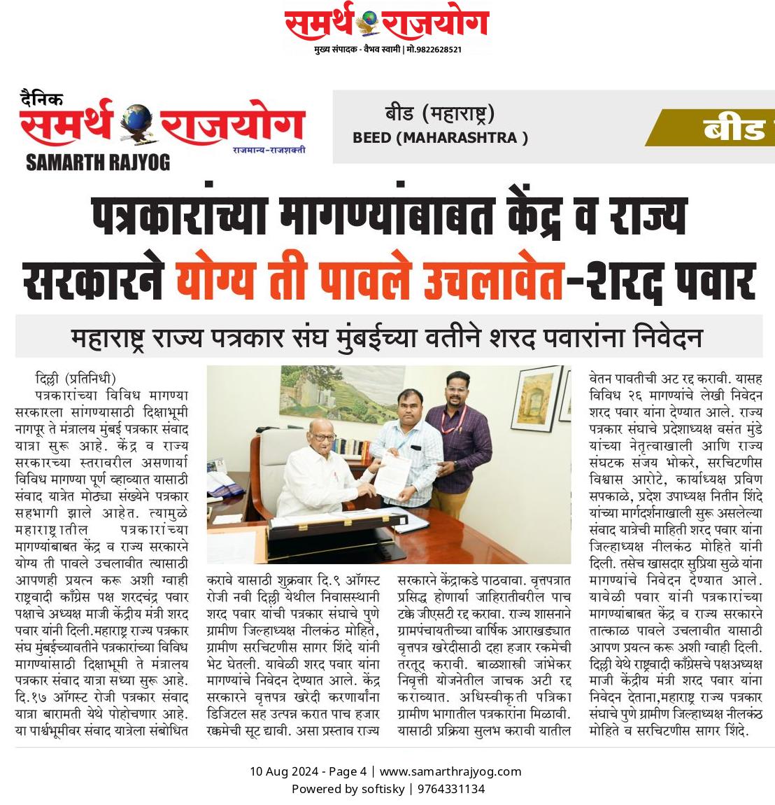 “लोकशाहीच्या बळकटीसाठी, पत्रकारांच्या न्याय हक्कांसाठी” हे ब्रीद घेऊन महाराष्ट्र राज्य पत्रकार संघ, मुंबईचे प्रदेशाध्यक्ष वसंत मुंडे यांच्या नेतृत्वाखाली दीक्षाभूमी- नागपूर ते मंत्रालय-मुंबई अशी राज्यव्यापी पत्रकार संवाद यात्रेला २८ जुलै २०२४ला प्रारंभ झाला.