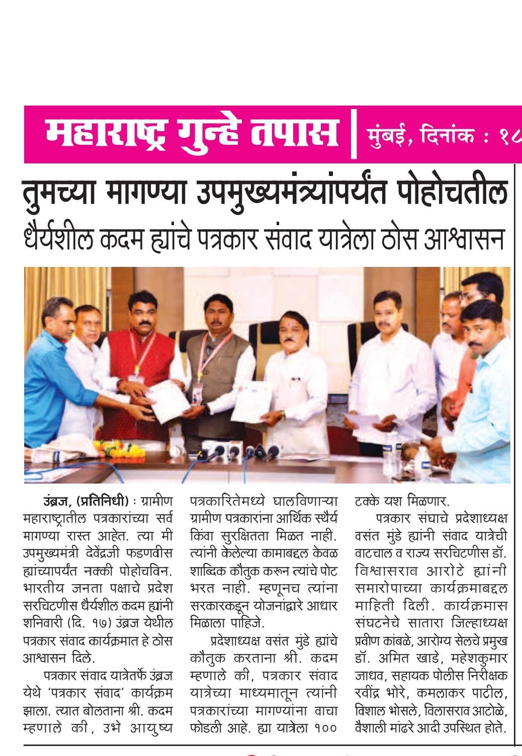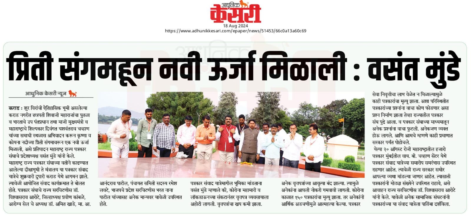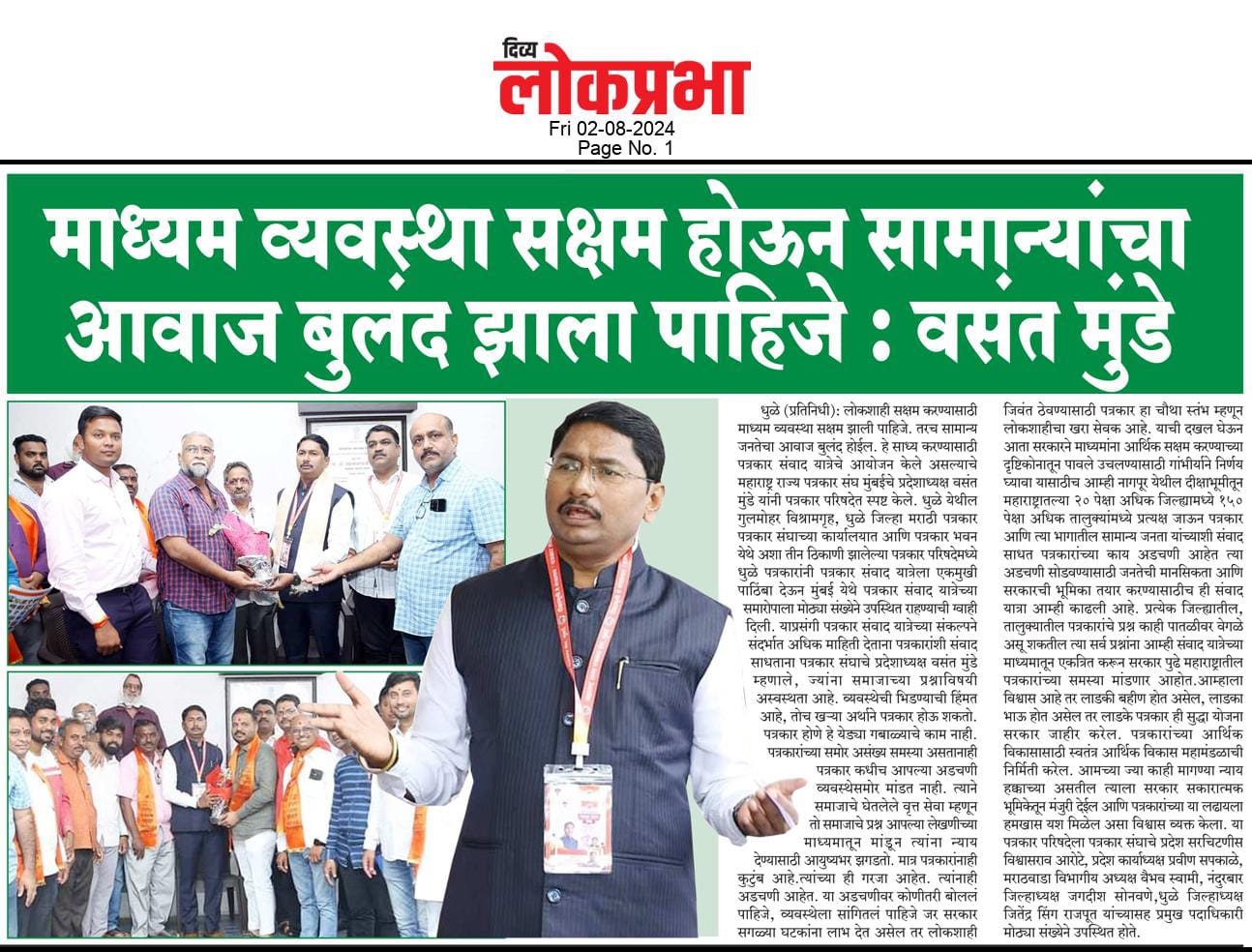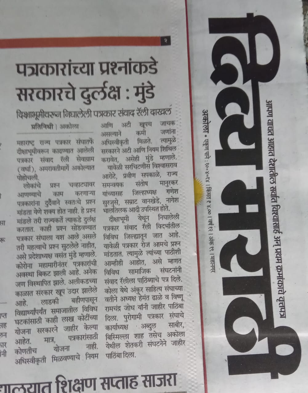 संपूर्ण राज्यभर सर्वाधिक सदस्य संख्या असलेली महाराष्ट्र राज्य पत्रकार संघ, मुंबई ही एकमेव संघटना आहे. या संघटनेचे सक्षम नेतृत्व प्रदेशाध्यक्ष वसंत मुंडे महाराष्ट्र राज्यातील पत्रकारांच्या प्रश्नांना वाचा फोडण्यासाठी आणि थेट जनतेशी संवाद साधण्याच्या दृष्टीने राज्यव्यापी पत्रकार संवाद यात्रा आयोजित केली. भारतीय संविधानाचे शिल्पकार डॉ.बाबासाहेब आंबेडकर यांच्या पदस्पर्शाने पावन झालेल्या नागपूरच्या दीक्षाभूमी येथून या पत्रकार संवाद यात्रेच्या पहिल्या टप्प्याला २८ जुलै रोजी प्रारंभ झाला.
