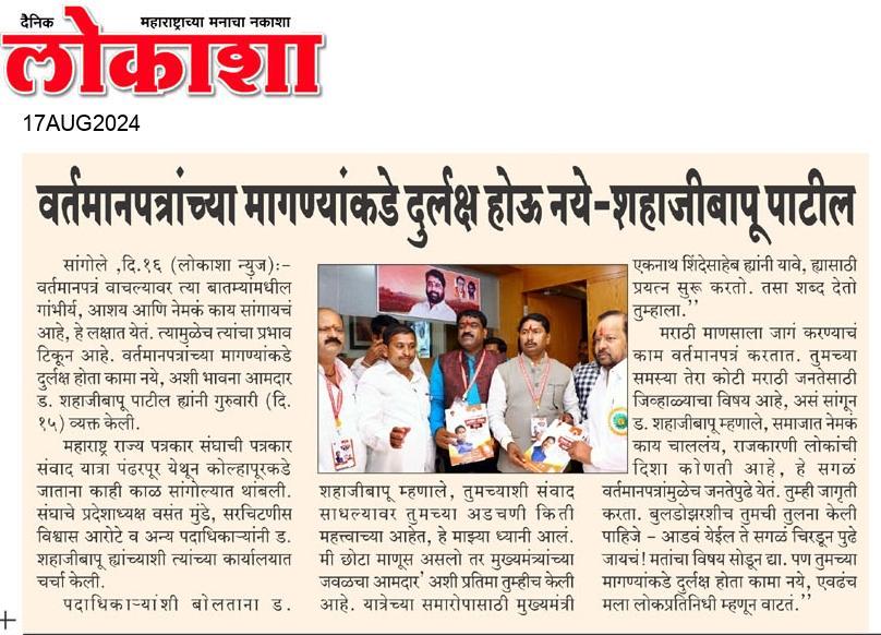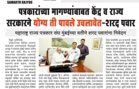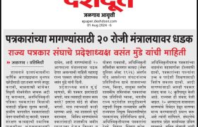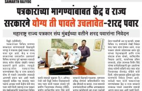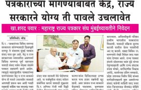 १) आचार्य बाळशास्त्री जांभेकर ज्येष्ठ पत्रकार सन्मान योजनेतील सलग तीस वर्षे सेवेची अट शिथील करून प्रक्रिया सुलभ करावी. तसेच दाखल झालेले प्रस्ताव सहा महिन्याच्या मर्यादेत निकाली काढून पेन्शन सुरू करावी. सध्या तीन वर्षे झाले तरी प्रस्ताव मंजूर होत नाहीत.