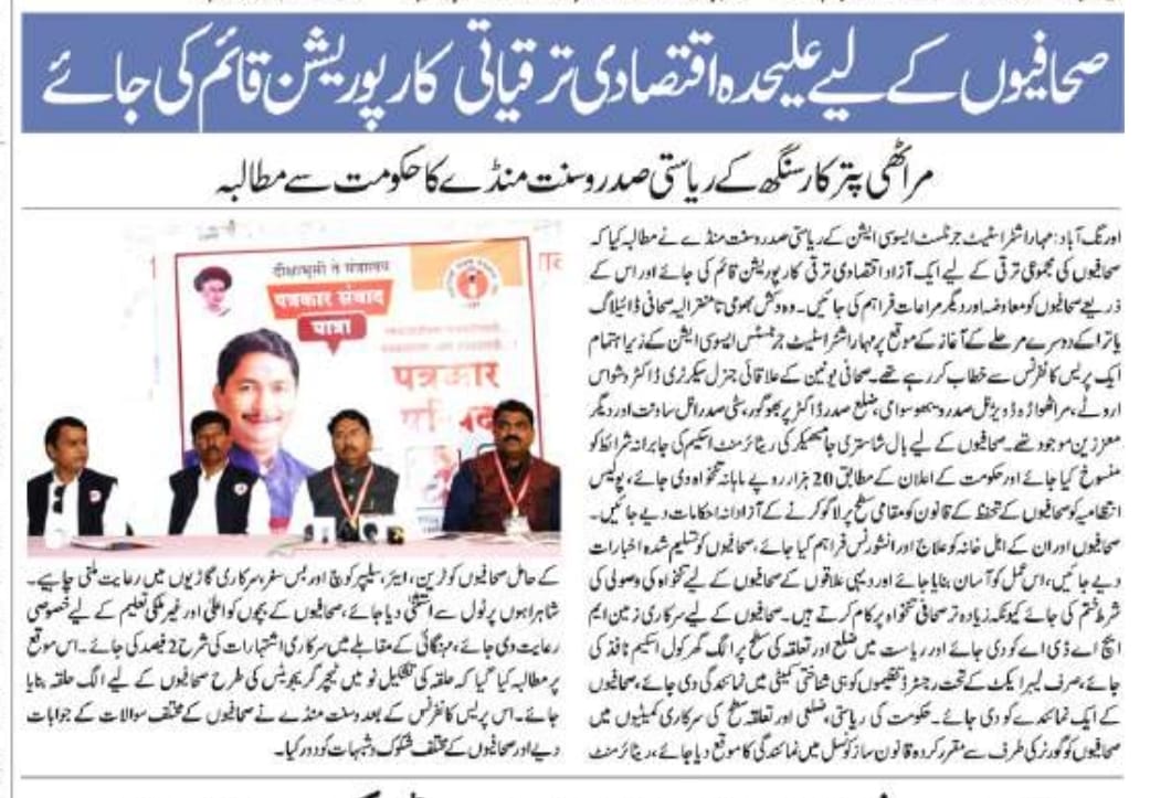 १) वृत्तपत्र व माध्यमसमूहांसाठी स्वतंत्र आर्थिक विकास महामंडळ स्थापन करावे.