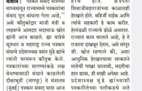 ७) शासकीय पुरस्कार दरवर्षी दर्पण दिनी वितरीत करावे यामध्ये तीन वर्षापासून खंड पडला आहे.